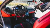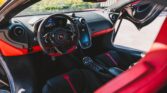The cabin is trimmed in a combination of red and black leather and Alcantara complete with contrast stitching and carbon-fibre inlays.