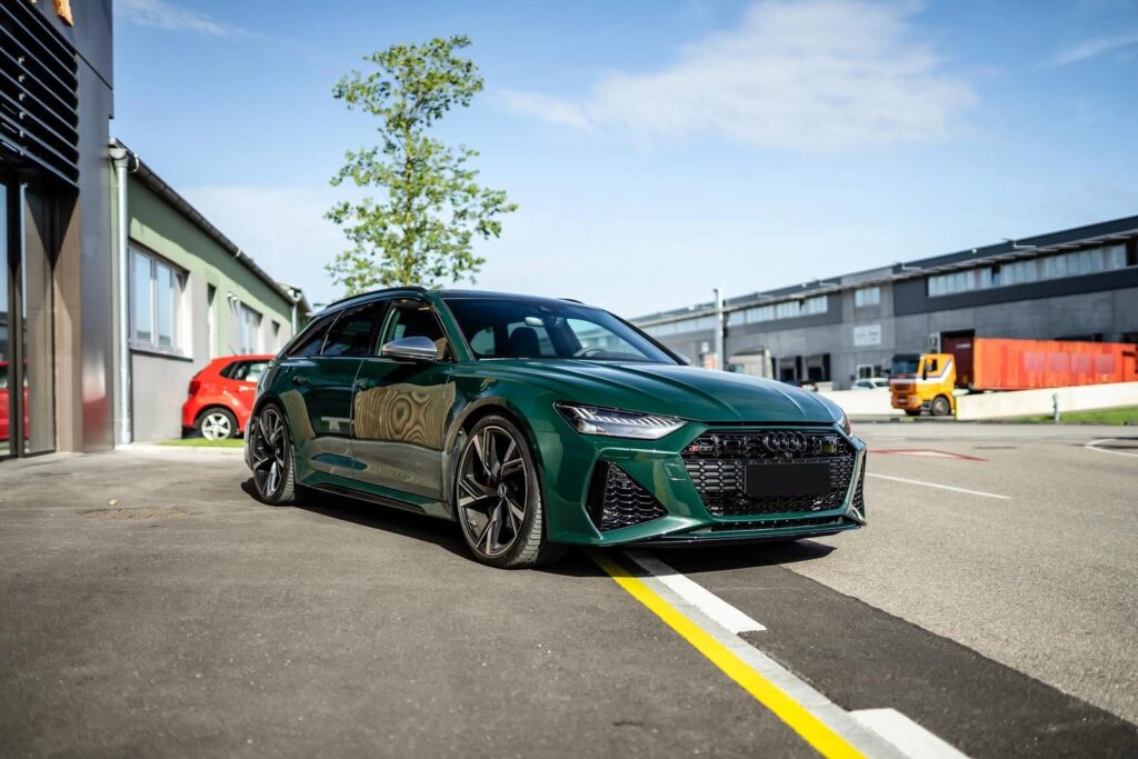 This 2021 Audi RS6 Avant 4.0 TFSI in Goodwood Green Metallic shows in immaculate condition. The 1st hand Audi features a unique configuration with numerous highlights such as ACC distance control, 600 hp V8 biturbo engine, and meticulous maintenance. In addition, the car also impresses visually with its almost legendary color combination of Goodwood Green with black leather interior. A very sporty and reliable car for enthusiasts and lovers is offered here